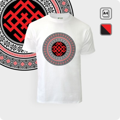 Рисунок оберега символ Белобога выполняется на футболке методом сублимационной термопечати на сэндвич ткани, что обеспечивает долговечность и износостойкость. Краски яркие и насыщенные. Стойкость от выстирывания.