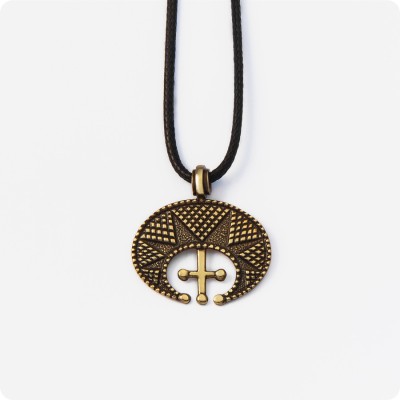 Подвеска Лунница с крестом, выполненная в виде полумесяца, олицетворяет женскую энергию. «Лунница с крестом» является отражением двоеверия, которое сложилось на Руси после принятия христианства. Это украшение оберегает владелицу от негатива и болезней.