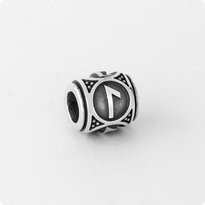 Шарм-бусина с руной Тейваз (Тюр) из серебра